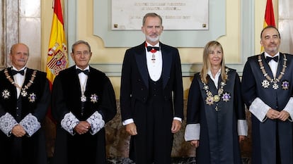 En el acto de apertura del año judicial, con el que cada septiembre se inaugura el curso de los tribunales, todo está medido siguiendo un protocolo desbordante de solemnidad y sin margen para la improvisación. Así fue también el celebrado este jueves, en el que se repitió la procesión de togas con el que el Tribunal Supremo exhibe toda su pompa. Pero, siendo todo igual, la imagen era insólita: por primera vez, una mujer ejercía de anfitriona como máxima representante del Poder Judicial.