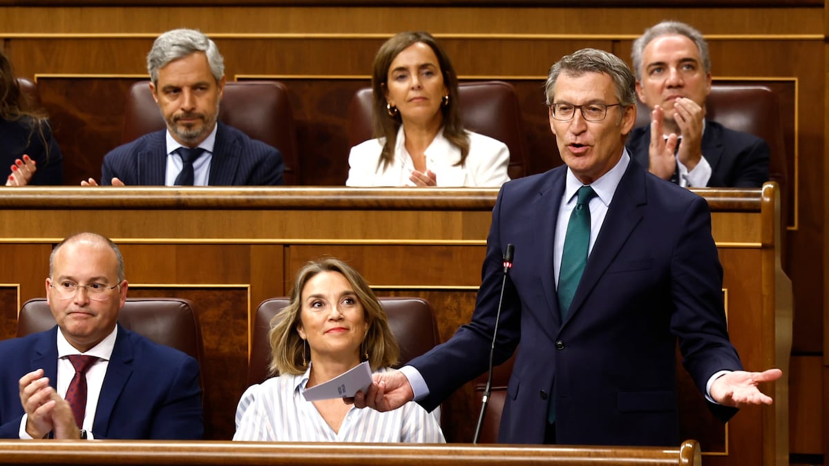 La jornada había comenzado con un Feijóo que por momentos recordó a su antecesor al frente del PP. El líder de la oposición quiso subrayar el tiempo transcurrido desde la última intervención del presidente en la Cámara y recurrió a la misma ironía que usaba Pablo Casado a menudo: “Bienvenido al Congreso, señor Sánchez”. Su discurso evocó también aquellos torbellinos de Casado enlazando a toda prisa un tema tras otro en apenas unos segundos. En menos de dos minutos, Feijóo mentó a Venezuela, el Banco de España, Franco, la corrupción o los Presupuestos. El plan de regeneración es en realidad, según el PP, “un plan de censura” de un Gobierno que ha desatado una “ofensiva contra jueces y periodistas” y que tiene una “concepción bananera del poder”.