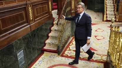Patxi López fue el encargado de replicar los ataques de Feijóo. El portavoz socialista volvió a justificar la decisión de aceptar la enmienda de Sumar para homologar la convalidación de penas como en los demás países de la UE, pero, sobre todo, defendió a la militancia de su partido. “Un solo militante socialista tiene más dignidad que todos ustedes [en alusión a los populares que en ese momento le estaban increpando desde sus escaños] de aquí a la eternidad”. El popular Jaime de Olano, que lleva meses significándose como adalid del sector más radical del grupo popular, le soltó con sorna desde su escaño: “¡Catedrático!”. El exlehendakari López respondió: “Más que tú”. Y luego revalidó la importancia de no renunciar al relato de la victoria de los partidos democráticos y las víctimas frente a una ETA derrotada hace ya 13 años y frente al “comodín” del pasado etarra que endosó al PP.