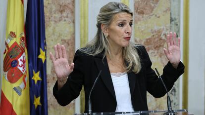 La izquierda vuelve a quebrarse noqueada aún por el caso Errejón. Ni 24 horas hicieron falta desde la dimisión del portavoz parlamentario, cercado por denuncias de acoso sexual, para que asomaran las primeras grietas dentro del espacio político. Y con el paso de los días, las diferencias han derivado en una especie de ajuste de cuentas que solo se explica atendiendo a la historia de la propia coalición: el malestar de Podemos y su relación con Yolanda Díaz; la falta de poder de Izquierda Unida en el grupo y su desaparición en el Parlamento Europeo; o los complejos equilibrios internos de Más Madrid. Después de reunir durante más de dos horas a sus 27 diputados en un intento por dar una salida a la crisis, la vicepresidenta, de vuelta de su viaje oficial a Colombia, compareció este lunes por primera vez y trató de despejar cualquier duda. “Es evidente que [Errejón] no tenía que haber sido ni diputado ni portavoz, pero esa información la tenemos esta semana”, zanjó.