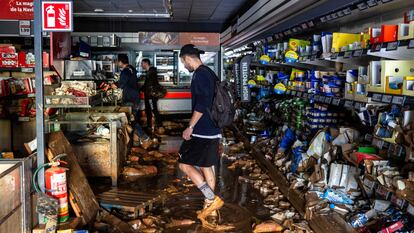 Los arcenes de la V-31 son una historia sin fin. En cada coche, en cada esquina, alguien tiene algo que contar. Son pequeños grupos de gente que se amontonan y consuelan unos a otros, aunque el gran flujo de personas se encuentra un poco más al fondo, en el Carrefour. Allí el parking es una piscina de coches, y el interior del supermercado un bazar gratuito para los más avispados. Casi rendido, Juan Carlos, de 53 años, trata de avisar el Opel que terminó de pagar la semana pasada con último cargo de 11.000 euros. “Es como si aquí se acabara todo. ¿Cómo te repones de esto?”, se pregunta a sí mismo. La Guardia Civil y la Policía Nacional patrulla el enclave para evitar los hurtos, aunque parece una misión casi imposible. La cifra de detenidos ha alcanzado la cincuentena durante la jornada. Son decenas y decenas de individuos y familias las que entran y salen de los establecimientos destruidos. Los agentes dan varios avisos por la megafonía de sus vehículos amenazando a los saqueadores. Aun así, muchos no pueden evitar la rebelión: