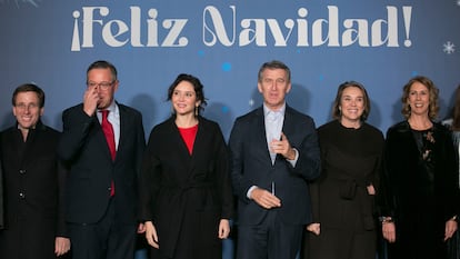 La cúpula del PP madrileño se ha reunido este lunes en un palacio de bodas, el de Negralejo, en la carretera de Mejorada, para celebrar su tradicional cena de Navidad y recordarse a sí mismos que son “una gran familia”, expresión que repitieron no menos de una decena de veces. La primera afiliada a la que entregaron una placa de “reconocimiento” por su labor se apellidaba, curiosamente, Casado, pero no consta que guarde parentesco con el exlíder del partido, el primero elegido en primarias, defenestrado otra noche fría hace un par de años por sus parientes de siglas.