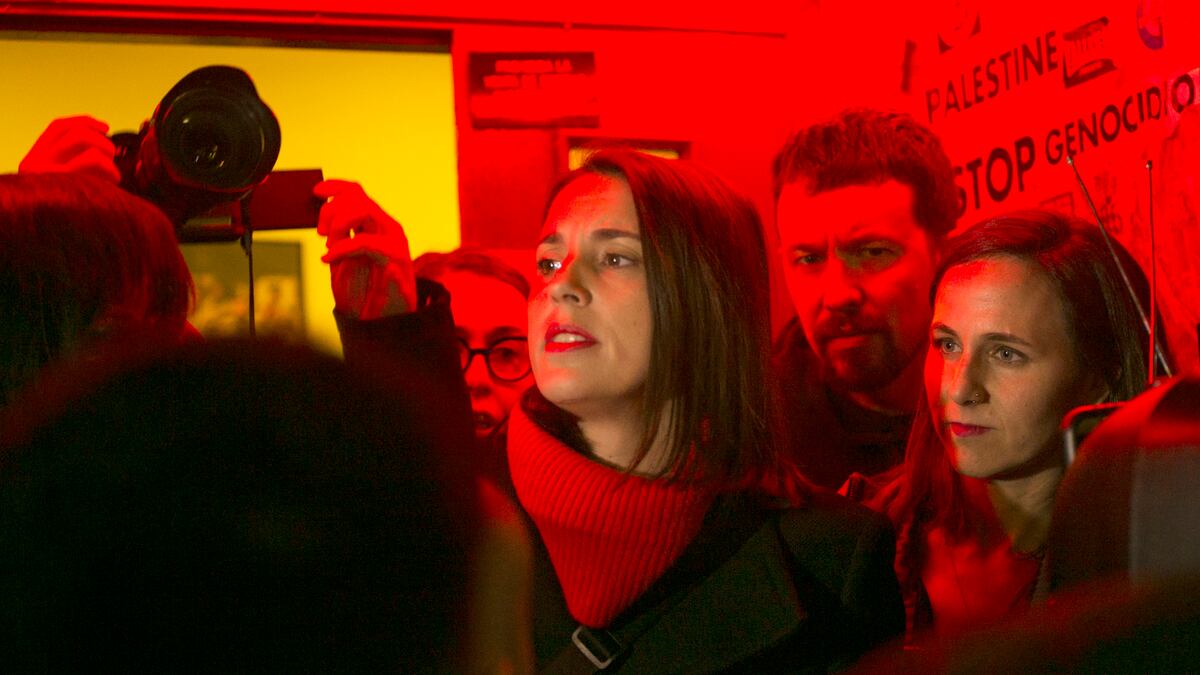 Irene Montero apareció sobre las 19.00, acompañada de Ione Belarra, secretaria general de Podemos, y de Laura Arroyo, periodista que haría la presentación del libro. “Hay que reconocer que aquí también hay mucha gente que no venía a esta presentación y que ha venido aquí para dar una respuesta antifascista, popular, a estas bandas de neonazis que están haciendo negocio echando a la gente de sus casas en el momento en el que más necesita la protección de sus vecinos”, ha dicho Montero a las puertas de la taberna, aclamada por los asistentes.