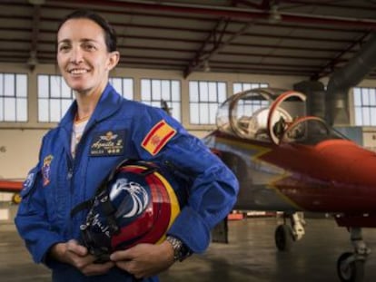 El teniente Óscar Sanz Rillo, madrileño de 28 años, lleva dos en la Patrulla Águila y es el más joven del grupo. “Lo más gratificante es ver que la gente disfrute”, explica este águila 2 (punto derecho, por la posición de su formación) en la base de San Javier (Murcia) nada más terminar sus acrobacias sobre las aguas del mar Menor. Su preferida, y en la que más se luce, explica, es el twister.