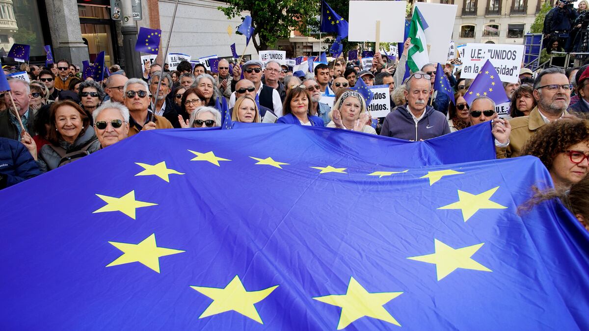 El escenario montado para la ocasión tenía como trasera la misma bandera, la de la Unión Europa. Porque este domingo estaban convocadas todas aquellas personas que siguen pensando que Europa es el mejor cobijo posible, ese que merece defensa siempre pero más ahora, y especialmente desde lo que pasó el 20 de enero de este año en Washington con la investidura de Donald Trump.