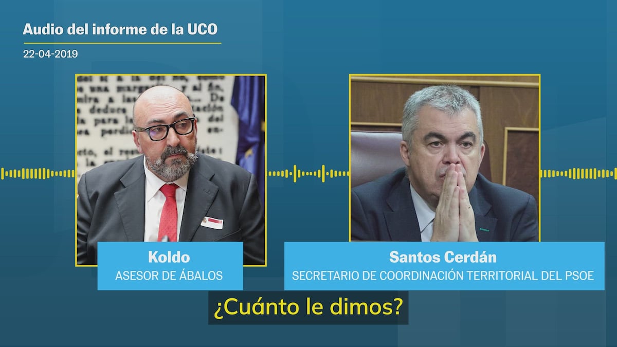 En este audio, con fecha 22 de abril de 2019, Koldo García solicita dinero a Santos Cerdán.