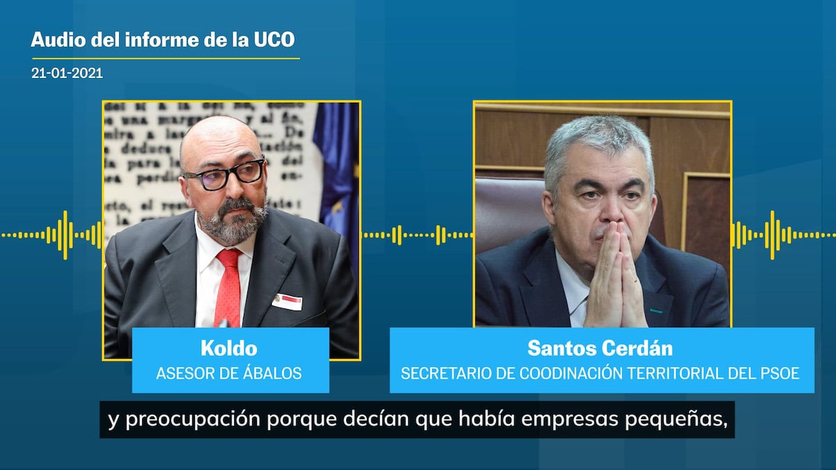 En esta grabación del 23 de noviembre de 2023 Koldo le insiste a Ábalos en que necesita reunirse cinco minutos con Santos Cerdán para pedirle que, en virtud de su relación con Óscar Puente, le consiga dos obras de las que poder sacar rédito.