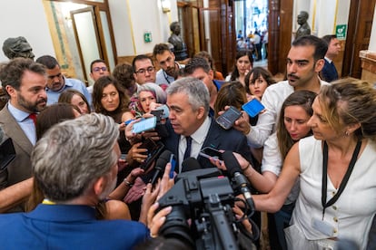 Este miércoles, como casi siempre cuando tiene sesión de control, Pedro Sánchez llega bastante temprano a la zona de Gobierno del Congreso, a pocos pasos de la entrada al hemiciclo. Allí están a esas horas miembros del Ejecutivo y del entorno más próximo del presidente que aprovechan para hablar con él en unos minutos relajados antes del pleno. Santos Cerdán es una de esas poquísimas personas ajenas al Gobierno que tenía autorización para entrar a esa zona cuando quisiera, por su estrecho vínculo con el presidente. Él ha sido mucho más que un número tres del partido. El negociador con Junts, el hombre que coordina todos los movimientos de los distintos dirigentes territoriales, el que maniobra para controlar el partido, una figura clave de las operaciones discretas. Cuando llama Cerdán, todos saben que es como si lo hiciera Sánchez.