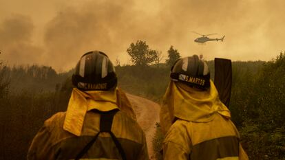 Por la mañana, el líder del PP había visitado el puesto de mando avanzado de Palacios del Sil, en León, donde lo acompañaba Alfonso Fernández Mañueco, jefe del Ejecutivo de Castilla y León, la comunidad más castigada por la oleada de incendios, que suma ya unas 115.000 hectáreas quemadas en España. El presidente del PP dedicó su comparecencia a enfatizar la responsabilidad del Gobierno —y a restarla así de las comunidades autónomas, en su mayoría de su partido— ante una “crisis nacional”, un “momento crítico”, de “extrema gravedad”, “inédito”, “difícil, muy difícil”.