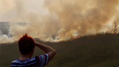 La descoordinación competencial con la que se afrontó este último incendio queda aún más evidente en el caso de poblaciones fronterizas como Castromil. Al Castromil zamorano llegó la orden de evacuar, pero no así al Castromil gallego, aunque las llamas eran mucho más fuertes en este último. Sofocado el fuego, el viernes por la noche los vecinos extenuados compartían en el único bar las anécdotas de 48 horas de batalla salvaje. Un jabalí que salió de entre las llamas, la bola de fuego que rodeó el tractor o los pies y las manos hinchadas que ahora reposan sobre una silla. “¿Sabes lo peor de todo?”, se pregunta Miro. “Que cuando esto pase y se vayan las autoridades y la prensa, todo seguirá igual”. Como la piedra de los tres reinos.