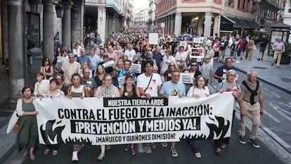 Esta gestión errática ha levantado una fuerte polémica y la presión política y social se intensifica. En la noche de este miércoles, cientos de personas se concentraban en Valladolid contra la política forestal de Mañueco, igual que ocurrió el lunes en La Bañeza (León) y también ha ocurrido antes en Burgos. En ellas, los manifestantes exigen la dimisión del presidente autonómico y la oposición lo acusa de “falta de previsión” en la gestión de la catástrofe. “El humo no tapa vuestra incompetencia”, se leía en una pancarta en la manifestación del lunes en León; “Un euro en prevención, 100 ahorrados en extinción”, en otra. “La magnitud de esta tragedia supera con creces la capacidad de respuesta de los recursos autonómicos y locales, comprometiendo la seguridad ciudadana y la protección del medio ambiente”, exclamaba un bombero ante los múltiples asistentes al llamamiento.
