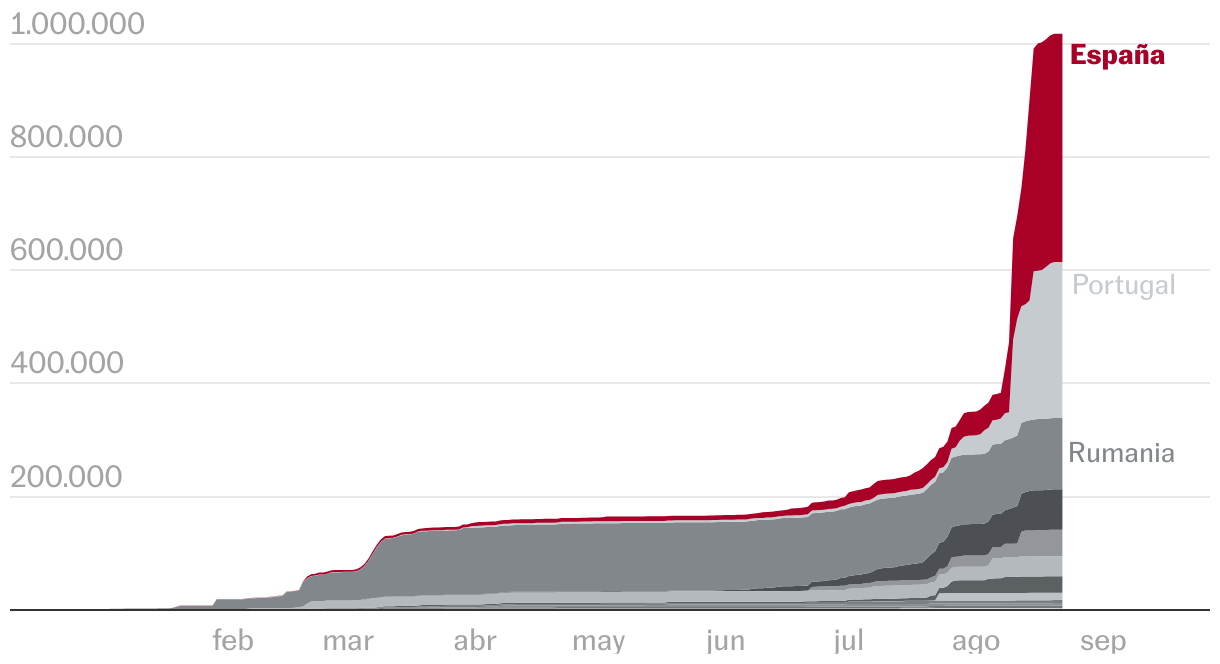Los incendios de Larouco (Galicia) y Uña de Quintana (Castilla y León) son ya los de mayor extensión registrados en España desde que existen perimetrajes de EFFIS, disponibles a partir de 2016 (aunque tienen estadísticas sobre superficie quemada más antiguas). Les siguen los de Llamas de Cabrera, Manzaneda y Oímbra, solo superados por el de Losacio en 2022.