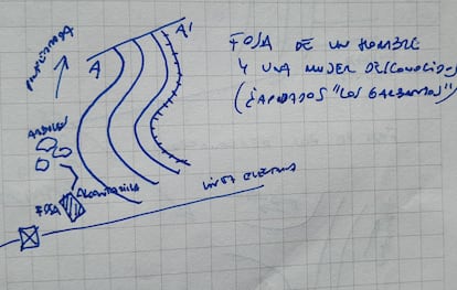 Una anciana llamada Martina Fernández compartió con el investigador Santiago Macías, presidente de la asociación Semillas de Memoria, información sobre un crimen por el que nadie se había interesado nunca. Siendo joven, en el verano de 1936, había oído unos tiros mientras trabajaba en el campo y cómo los verdugos se dirigían a las dos víctimas, un hombre y una mujer, como Los Garbanzos. Los vecinos de Cubillos del Sil, en la comarca de El Bierzo (León), que enterraron los cadáveres, no los conocían. No eran del pueblo. “Martina”, relata Macías, “me llevó hasta el lugar en 2009 e hice un croquis del sitio, al borde de una carretera. Era una investigación al revés: normalmente, sabemos los nombres de los desaparecidos del franquismo y desconocemos el lugar donde fueron arrojados sus cuerpos. Aquí sabíamos el lugar, pero no quiénes eran, solo su mote”.