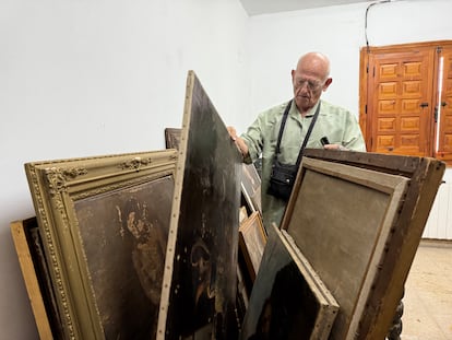 En un sótano del Ayuntamiento de Lagunaseca, un pequeño municipio de la Serranía Alta de Cuenca con apenas medio centenar de censados, reposan un centenar de obras restauradas por Mariano Vélez, un sacerdote jubilado que pasa sus años de retiro entre los misales y calices de la parroquia de Vallecas a la que acude como voluntario y las visitas que realiza a los anticuarios del Rastro de Madrid. De allí han salido la mayoría de las obras que ha restaurado desde que su vocación religiosa se entremezclara, casi al mismo tiempo, con la artística. Cristos, vírgenes, escenas evangélicas, pero también bodegones, marinas, cobres pintados y hasta muebles conforman una nutrida e insólita colección de arte que Vélez desea ver expuesta antes de morir en su pueblo natal: “Tengo 80 años, no puedo esperar mucho más. Cualquier día me puede dar algo, y no quiero que todo esto se quede encerrado”, cuenta.