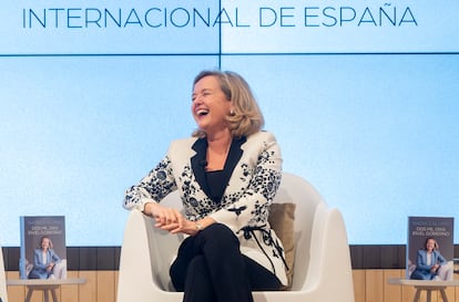 Nadia Calviño se fue a Luxemburgo hace casi dos años para presidir el Banco Europeo de Inversiones (BEI) pero es como si no se hubiera ido del Ejecutivo. La presentación de Dos mil días en el Gobierno en la que la ministra de Economía desde 2018 a finales de 2023 y vicepresidenta primera los dos últimos años repasa en primera persona su papel en la gestión de las crisis sucesivas que tuvo que afrontar la primera coalición en el poder, y además de izquierdas, desde la II República, generó una movilización impensable con distintas generaciones de socialistas y del empresariado para una mujer que arrastra la fama de tecnócrata, ortodoxa y distante desde el primer Gobierno bonito de Pedro Sánchez, una impresión que no comparte, y se siente identificada con la definición de defensora del rigor y la responsabilidad. “Siempre será una de los nuestros”, resumía uno de los siete ministros, ninguno de Sumar, que acudió a la Fundación Ortega-Marañón. “Nosotros tenemos a Nadia y ellos a nadie”, recordaba con tono burlón otro alto cargo del Ejecutivo parafraseando a Pedro Sánchez cuando reivindicaba a Calviño y sus buenos datos de crecimiento macroeconómicos frente a la falta de un plan económico del PP que basa su estrategia para regresar a La Moncloa en el antisanchismo.