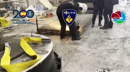 En el momento en el que realizaron las detenciones, los agentes interceptaron de forma coordinada con las autoridades de Países Bajos un cargamento oculto en maquinaria industrial que viajaba en un contenedor marítimo desde Costa Rica.