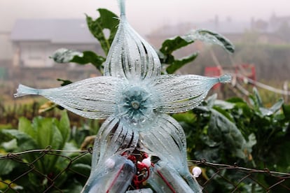 La Navidad de plástico reciclado de un pueblo de Ponferrada a cero coste: “Ni nos planteamos poner adornos convencionales”