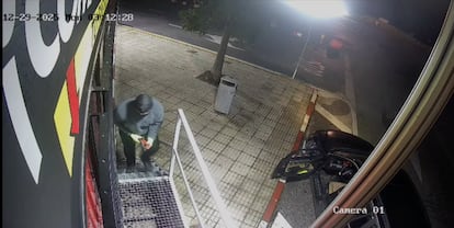 El robo ha sido muy rápido. De apenas dos minutos y medio. En las imágenes de seguridad se ve a los cinco ladrones abriendo la puerta trasera del camión de los regalos. Aquí, extraen la caja fuerte y, en cuestión de segundos, la logran meter en el maletero del turismo. El maletero, de hecho, ni se cierra. Pero poco importa. En cuestión de segundos los encapuchados huyen por la autovía con el botín.