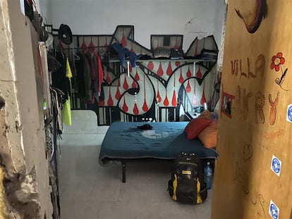 De vuelta a la prisión, en el pequeño salón que tienen montado en el ala más cercana a la autovía que circunvala la ciudad, Gemma se sienta a la mesa con un mantel en la que hay restos de un plato con comida. Junto a la mesa, han colocado un sofá que tiene vistas al marco sin cristal de la ventana que da al muro principal que separa la calle con el alambre de espino todavía instalado en la parte superior. Un perro con jersey corretea por debajo de las sillas. Un hombre que prefiere no decir su nombre, natural de Mallorca, está con ellas. Tiene 55 años y está en paro. No puede pagar una habitación y hace dos meses se vio abocado a vivir en este recinto. “Por lo menos no me mojo”, lamenta, mientras denuncia las dificultades para obtener un empleo a su edad. Cruz Roja acude cada miércoles a la prisión para ofrecer bolsas con algunos alimentos y ropa de abrigo para sus moradores, pero este residente denuncia que los servicios sociales del Ayuntamiento de Palma les tienen completamente abandonados. “No te dan ayudas, no están ni se les espera, no han aparecido por aquí”, concluye.
