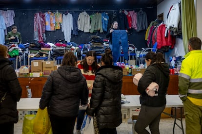 Julia Ramírez se ha acercado este martes por la mesa que coordina Cedillo para recoger unas zapatillas para su padre —que sufre una minusvalía—, un jersey y unas toallitas húmedas. Ella, su padre y su hermano están en Zahara, su hijo, en Ronda. La familia acabó dividida después de que a ella y a su padre les desalojaran del hotel El Fuerte Grazalema un día después y acabasen en el hotel Tugasa de Zahara. “Esos dos desalojos los recuerdo como una película. Yo me decía a mí misma que eso no me podía estar pasando”, asegura Ramírez. La grazalemeña de 53 años pudo regresar este lunes a su pueblo a alimentar a su gato y a recoger la máquina de respiración de su padre: “El pueblo estaba seco, fue una pequeña alegría encontrármelo así. Pero también es un pueblo fantasma, impone mucho”.