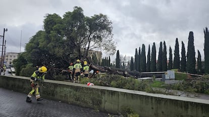 En Sevilla, los vientos de 70 kilómetros por hora se han cebado con el arbolado de la capital, provocando roturas de ramas en ejemplares de gran tamaño. La caída de una palmera sobre un coche que circulaba por la avenida de Kansas City ha herido a una mujer que se encontraba en su interior, que ha sido rescatada por los servicios de Emergencias y trasladada al hospital. El vendaval también ha hecho caer un árbol en la calle San Jacinto, una de las arterias principales del barrio de Triana, un incidente que, aunque no ha causado daños personales, ha hecho cundir el miedo entre los vecinos, obligando a perimetrar la zona para garantizar la seguridad.