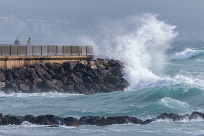 Dos personas observaban el fuerte oleaje en Palma de Mallorca por las rechas de vientoCATI CLADERA (EFE)
