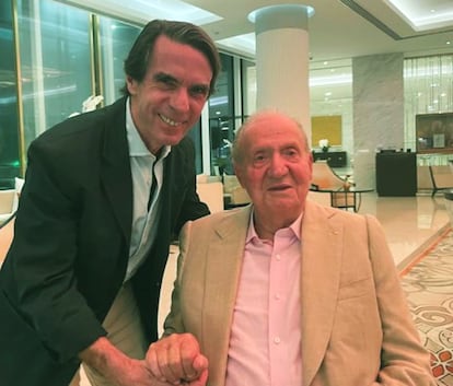 El expresidente del Gobierno José María Aznar ha publicado en su cuenta de Instagram una foto con el rey Juan Carlos acompañado de un escueto comentario: “Reencuentro con el Rey de las libertades y la democracia en España”. Aznar no especifica ni cuándo ni dónde fue tomada la imagen, aunque por el aspecto de ambos parece muy reciente.
