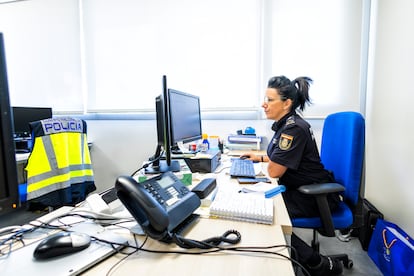 Puedes creer que estás chateando con una joven escandinava que acaba de llegar a la ciudad. Comienza una relación en la que se produce un intercambio de imágenes de contenido sexual. Todo va bien, hasta que la chica comienza a pedir dinero a cambio de no publicar las imágenes. En realidad, quien está detrás del teléfono es otro hombre que buscaba chantajearle, explica la inspectora Virginia, jefa de uno de los grupos de investigación de la Sección de Redes de la Policía Nacional. “Todos los delitos tienen su imagen en el mundo virtual, el problema es que allí no sabemos de donde procede”, explica esta rastreadora profesional de internet. “La víctima se agobia mucho. Y nunca sabes cuándo esas amenazas van a hacerse realidad”, añade. La agente Virginia, con más de una década de experiencia investigando los delitos en las redes, recuerda un caso de acoso a una militante de Vox que recibía constantemente mensajes de un hombre. Un día le criticaba, otro le decía que no hablara o se acercara a una persona determinada o le contaba que la había visto en un acto del partido. Parecía que estaba cerca y realmente lo estaba. “No le llegó a hacer daño, fue detenido antes, pero todo era real”, cuenta la inspectora.