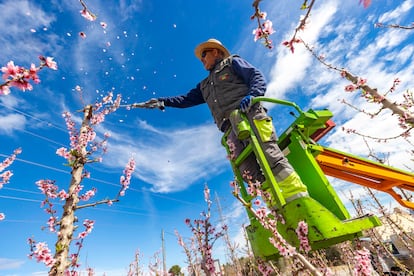 La idea de arropar de manera conjunta las cuatro floraciones para potenciar el turismo de interior ―que en 2025 creció un 33 por ciento en Murcia con respecto al año anterior, según los datos que maneja la Consejería― es nueva, pero la de buscar el tirón turístico de la agricultura no lo es. En Cieza, con unas 13.000 hectáreas de terrenos dedicados al cultivo de frutas de hueso como melocotones, nectarinas, ciruelas o albaricoques, llevan más de una década aprovechando el campo como producto turístico. Un atractivo que descubrió a mediados de los años 90 el profesor de Artes Plásticas y fotógrafo Fernando Galindo al ver las fotos que le había hecho a su hija paseando por el campo. “Yo no inventé nada, simplemente me di cuenta de lo que teníamos, y que nadie veía. Un paisaje espectacular por su policromía, con las flores blancas, rosas y fucsias, el verde y el marrón de la tierra”, explica a EL PAÍS.