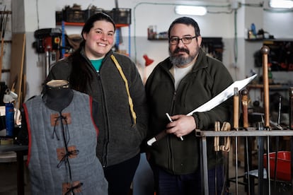 Eugenio Peco y Patricia F. Lasauca tienen un trabajo único: artesanos de historia, o de la recreación histórica. Y es único porque, efectivamente, apenas hay profesionales de lo suyo en España. Y por lo suyo se entiende fabricar con rigor histórico armas, armaduras, vestimentas y todo tipo de atrezo que tenga su origen en el periodo entre el siglo XI y XIX, con especial interés en la Edad Media española, del XI al XV. En su fábrica-taller de Valderrubio (Granada) producen artesanalmente todo ese material para sus clientes, principalmente españoles y portugueses. Sus compradores entran en dos ámbitos muy concretos: amantes de las recreaciones históricas en vivo o aficionados al LARP, Life Action Role Playing, juego de rol en vivo, en el que los jugadores interpretan a sus personajes en tiempo real, con vestuario de época –que puede ser futura– y utilería.