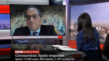 Torra asegura en la BBC que Sánchez impide el confinamiento de Cataluña