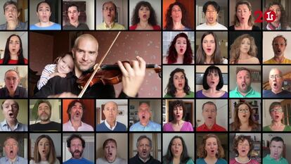 Se trata de un vídeo multipantalla en el que se suceden las apariciones de músicos y cantantes del coro desde sus casas, intercaladas con imágenes de una Barcelona desconocida: vacía. “Fue una grabación compleja, con sesiones de teléfono de 12 horas durante una semana”, explica Igor Cortadellas, director creativo, que buscaba que la luz fuera un elemento que definiera esa esperanza a la que alude el aria. “Ha sido todo un experimento y llamamos uno por uno a todos los artistas”, añade. El maestro Josep Pons y la directora del coro, Conxita Garcia, dirigen el himno musical, que tiene como protagonista al tenor Jorge de León, quien ha cambiado el galáctico escenario del Turandot que abrió esta temporada del Liceo -junto con Iréne Theorin- por las estancias de su domicilio.