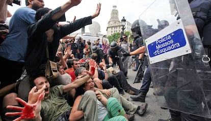 Nueve años después de unas imágenes que dieron la vuelta al mundo, el tribunal ha concluido que no estaban “justificados en ningún caso” los golpes de porra a los “indignados”, como se llamó el movimiento de protesta social que surgió a raíz de la manifestación del 15 de mayo de 2011, que tuvo como epicentro en Barcelona una acampada en la plaza de Catalunya. La sentencia remarca que los manifestantes estaban en el suelo "en actitud absolutamente pacífica e incluso con las manos levantadas haciendo el gesto de la paz” para intentar impedir el desalojo de la acampada.