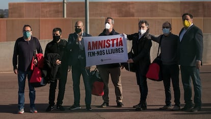 Los líderes políticos del procés han abandonado este viernes las cárceles en las que cumplen condena tras el tercer grado concedido el jueves por la Generalitat a los líderes independentistas y coincidiendo justamente con el primer día de campaña electoral. La primera en salir ha sido la exconsejera Dolors Bassa, que al dejar la cárcel de Puig de les Basses en Figueres (Girona) ha hecho un llamamiento a la movilización para “volver a ganar” el próximo 14 de febrero. Poco después de las 10.30 abandonaban la prisión de Lledoners (Barcelona) los Jordis (Sánchez y Cuixart) y los exconsejeros Oriol Junqueras, Raül Romeva, Jordi Turull, Joaquim Forn y Josep Rull. Lo hacían luciendo una pancarta reclamando amnistía. La única que, por el momento, no abandonará a prisión es la expresidenta del Parlament Carme Forcadell, que está todavía pendiente de una resolución.