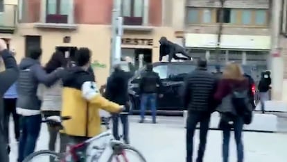 Tiran piedras y huevos contra un acto de Vox en Vic y una persona se encarama a un coche de la comitiva