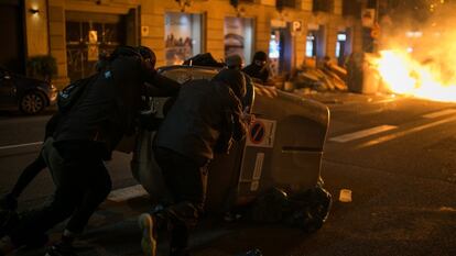 La “violencia extrema”, según la han calificado las autoridades catalanas, que se vivió este martes en diversas ciudades catalanas desbordó a los Mossos d’Esquadra. Los manifestantes destrozaron la comisaría de la policía catalana en Vic: rompieron los cristales, dañaron las cámaras de seguridad, sabotearon la línea de teléfono, causaron daño a una furgoneta y los policías tuvieron que pedir auxilio al verse acorralados. “Tuvieron que usar el código 33″, ha explicado el consejero del Interior, Miquel Sàmper, sobre el número que utilizan por la emisora para alertar de una situación de “extrema gravedad”. La alcaldesa de Vic (Barcelona), Anna Erra, ha condenado este miércoles la violencia que emplearon algunos de los manifestantes y ha asegurado que “se cruzó una línea roja, nunca se había terminado [una manifestación] con estos disturbios”.