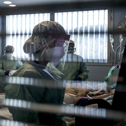 “Durante la cobertura de la pandemia se ha ido buscando reflejos con la idea de poder mostrar el imaginario de la nueva realidad acontecida. Esta, sobrecogedora y visualizada casi como un espejismo paralelo, sale del relato cronológico para documentar instantes del rastro de su azote”. Así presentó el fotoperiodista Toni Ferragut, colaborador de EL PAÍS, la fotografía que este jueves por la noche ha obtenido el premio Carles Rahola en la categoría de fotoperiodismo y que apareció publicada en este diario el pasado 24 de noviembre en una fotogalería en la que se mostraba la actividad frenética en el Hospital Josep Trueta de Girona durante la segunda ola de la pandemia del coronavirus. “A nivel personal”, explica el fotógrafo, “me siento más feliz, si cabe, porque este año la participación ha sido de las más elevadas”. Los galardones son convocados desde 2010 por la Diputación de Girona y la demarcación gerundense del Colegio de Periodistas de Cataluña.