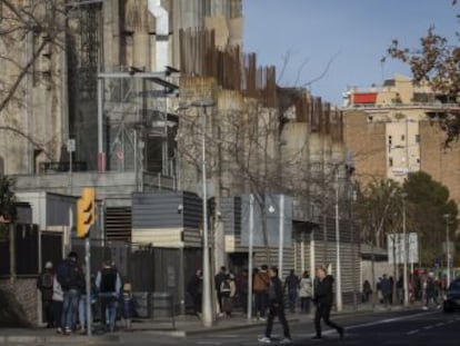 La Sagrada Familia que Antoni Gaudí dejó inconclusa al fallecer en 1926 sigue en construcción después de 140 años de trabajos. Pero este templo expiatorio ha crecido en los últimos años de forma vertiginosa gracias a la venta de entradas a los turistas que lo han convertido (con permiso de la pandemia) en uno de los edificios más visitados de España. Eso es algo que pocos podrían imaginar. Mucho menos el millar de personas que viven o trabajan desde 1976 en el bloque que se construyó junto al templo, pensando que la que estaba prevista que fuera su entrada principal: la fachada de la Gloria, nunca se llegaría a construir. Ahora que ya se ha fijado 2026, centenario de la muerte de Gaudí, como la fecha para terminar todos los trabajos, urge valorar si la basílica puede crecer a costa de esos vecinos y, en ese caso, darles una alternativa, algo que enfrenta al Ayuntamiento de Barcelona y a los responsables de las obras del templo.