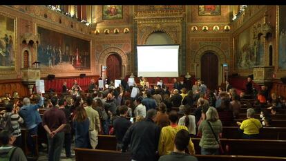 El lunes, un grupo de un centenar de miembros de los sindicatos educativos irrumpieron en el paraninfo de la Universitat de Barcelona donde Cambray presidía el acto de presentación de una guía (UB) sobre la construcción de edificios educativos. Los manifestantes entraron en la sala con silbatos y bocinas y pidiendo a gritos la dimisión del consejero. El acto, finalmente, fue suspendido. “Hay boicots y sabotajes que no corresponden a actitudes propias de los maestros y no son tolerables”, ha criticado Cambray este jueves, al mismo tiempo que ha calificado estas actitudes de “violentas”. Preguntado sobre a qué se refería cuando hablaba de violencia, el consejero ha abundado: “Cuando se ocupan espacios y entran por la fuerza sin permitir que se realicen actos”. Y ha rematado: “Estos boicots no me pararán ni frenarán mi acción”.