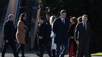 La aparición de Aragonès en la cumbre fue fugaz. La Generalitat no había concretado qué rol jugaría el president en la reunión, y se puso el énfasis en su voluntad de no renunciar al papel de anfitrión. Llegada la hora, Aragonès saludó a Sánchez cordialmente pero con gesto serio. En el intercambio de saludos, el president quiso recordarle la idea que el procés no ha terminado. Aragonès lo justificó luego en su comparecencia:”Hay quien ha tratado de usar la cumbre para intentar imponer la percepción que el conflicto político en Cataluña se ha resuelto”, reprochó. Más sonrisas despachó cuando Macron apareció en escena. “Le he querido trasladar la vocación europeista de Cataluña y del Govern y nuestra voluntad de avanzar en este proceso de construcción europea”, declaró luego Aragonès.