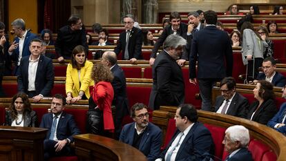 5. La bancada de la derecha: PP y Ciudadanos. La convocatoria electoral ha pillado a contrapié al PP, que ha ido aplazando sine die la situación del partido en Cataluña, ahora enquistada al no haberse convocado el congreso regional. La encuesta del CEO de noviembre pronosticaba una importante recuperación del PP catalán, que pasaría de los tres diputados que tiene ahora a entre 12 y 17. Con estas estimaciones, el presidente del PP, Alejandro Fernández, ha mantenido un tenso pulso con Génova tras sus devaneos con Junts y pide a su partido en Cataluña superar las “tutelas” y tantos “bandazos ideológicos”. Según los estatutos, el presidente del partido es el candidato y en su aplicación Fernández debería repetir. Hace tiempo que no quiere hablar de su situación y tampoco ayer. “Podemos el 12 de mayo poner fin al procés y al sanchismo. Todo a la vez”, ha afirmado Fernández, que no ha aceptado preguntas. En caída libre desde hace años, Carlos Carrizosa, líder de Ciudadanos, ha recordado que en el debate ha pedido elecciones y ha vaticinado que su partido se preparará para dar batalla. Las últimas encuestas del CEO no les otorgan representación.