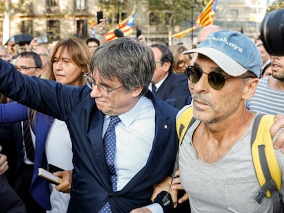 El procés dejó la última década infinidad de jornadas históricas y la de este jueves, que remachó el final de ese periodo, no se ha sustraído de esa condición. El Pleno de Illa quedará asociado a Puigdemont por la duda de su paradero, su compromiso incumplido de asistir a la sesión, la movilización independentista en la Ciutadella o la operación jaula con unos Mossos al límite. Junts ha marcado el paso de buena parte del debate con sus peticiones para suspender la sesión que la Mesa rechazó. El PSC daba por hecho que la sesión se iba a suspender porque Josep Rull, el presidente de la Cámara, había anunciado que así procedería si el expresident era detenido. Pero no fue arrestado, burló a los policías y el Pleno, con su escaño vacío, ha arrancado. Illa no le ha citado, pero ha pedido a los jueces que apliquen la ley de amnistía de manera “ágil, rápida y sin subterfugios”.