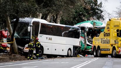 Un peatón que cruzaba la Diagonal, principal hipótesis sobre la causa del accidente de los dos autocares turísticos en Barcelona