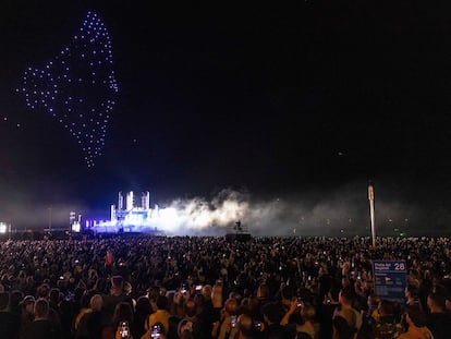 A partir de ahí, la playa se transformó en escenario y grada. Unos 20 intérpretes dieron vida sobre la tarima al relato de amor y conflicto entre el corsario musulmán Said y la cristiana Blanca, inspirado en la obra de Àngel Guimerà. Entre el teatro y la ópera, entre lo épico y lo íntimo, el espectáculo desplegó su narrativa con una puesta en escena ágil que incluyó elementos visuales, acrobacias y una pantalla que permitía seguir la acción desde distintos puntos de la playa.