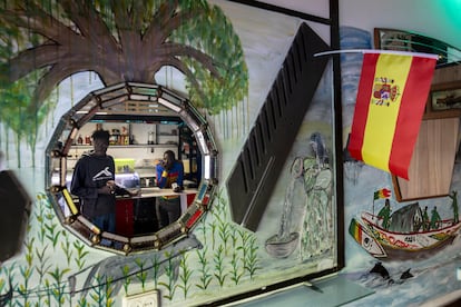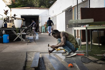 El nombre, B9 (Badalona 9) es casi lo único que queda de un instituto público abandonado (despidió a sus últimos alumnos en 2011) que ahora es el mayor asentamiento informal de migrantes en Cataluña. Hay electricidad, agua y hasta dos bares muy dignos y decorados, que son también puntos de encuentro. “Aquí hay mecánicos, lampistas, paletas, fontaneros… Hacemos de todo”, cuenta Keita, de 42 años y nacido en Senegal, en la terraza del bar, bajo un toldo negro, antes de ponerse a cortar aluminio con una radial. Son las 10 de la mañana de un martes. Keita está aquí porque trabaja de noche (de controlador en una discoteca), pero la mayoría han salido “a buscarse la vida”, algunos con permiso de trabajo, otros en negro o en la chatarra.