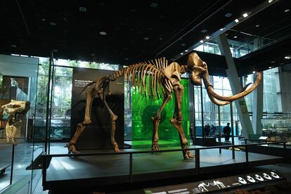 El fósil de mamut lanudo de CosmoCaixa, de 6 metros de largo y 3,5 metros de altura, está compuesto en realidad de huesos originales de tres ejemplares de la especie hallados en el permafrost (la capa de suelo congelada de las latitudes septentrionales) en la región de Tiumén (Rusia). Tras ser adquirido en EE UU por medio millón de euros, el espécimen, de entre 40.000 y 50.000 años, ha sido el protagonista de una exposición montada en 2021 que ha itinerado por los CaixaForum de Sevilla, Zaragoza, Madrid, Palma y Tarragona y que ha congregado un total de 308.000 visitantes. A partir de ahora se integra en la colección de CosmoCaixa destinado a convertirse en una pieza emblemática del museo.