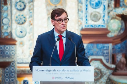 Bajo una fuente que ejemplifica el exuberante estilo barroco virreinal, Rosa María Duran, de 98 años, y Pelai Vilar, de 92, han hecho memoria del exilio catalán en México. La mochila del dolor, pero también los réditos del mestizaje. El patio de la Casa del Risco, en el barrio mexicano de San Ángel, ha sido este domingo el escenario de un sentido homenaje, con que el president Salvador Illa ha querido renovar unos votos de fraternidad entre los dos pueblos. “Nuestras raíces están en Cataluña, pero nuestros frutos están México”, ha explicado Duran, de 98 años, intérprete de profesión. “Aquí hacemos labor”, ha asegurado por su parte Vilar, otorrinolaringólogo, para referirse a su grano de arena para el conocimiento de la lengua catalana. Ambos llegaron, de niños, huyendo de la Guerra Civil en la década de los años cuarenta. “México salvó vidas y gran parte de la cultura catalana”, ha declarado el jefe del Govern ante una audiencia conformada por hijos y nietos de exiliados.