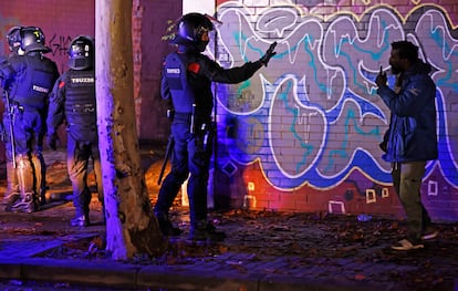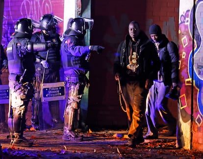 Ibrahim N., nigeriano, llegó a España hace un mes y vivió algunos días en el asentamiento. “Salí la semana pasada. Había mucha gente y ya se decía que la policía podía llegar en cualquier momento”, ha explicado junto al primer grupo que ha salido del recinto al son de tambores y batuques. Allí, en el exterior, se han concentrado activistas en protesta por el desalojo y con críticas a la policía. “A mí me pagan el sueldo por echar a la gente del pueblo a la calle”.