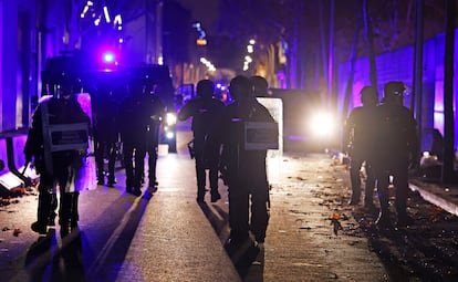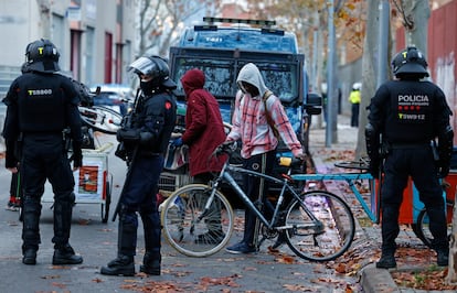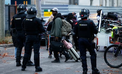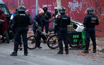 No ha habido sorpresa de última hora en el antiguo instituto B9 de Badalona. Los rumores que circulaban se han cumplido pese al intenso aguacero que, la víspera, anegó parte de la ciudad: a las 7.00 de la mañana de este miércoles, un amplio despliegue policial ha empezado el desalojo del que, hasta ahora, era el mayor asentamiento de migrantes de Cataluña. Aunque algunos se han marchado en los últimos días, conscientes de que el desahucio era inminente, el grueso de los residentes —llegaron a ser más de 400— ha decidido permanecer, hasta el último minuto, en el viejo centro de enseñanza que, durante más de dos años, ha sido su techo y refugio.