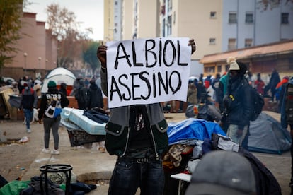 La tregua ha durado dos noches. Este viernes, los casi 100 migrantes que habían acampado en una plaza cercana tras ser desalojados del instituto B9 de Badalona (Barcelona) han sido forzados a irse. A las 10 de la mañana, cuando vencía el plazo dado por la policía local y después de momentos de mucha tensión, han accedido a recoger sus tiendas de campaña. La alternativa era, según les habían anunciado los agentes, la intervención de la Brigada Móvil, los antidisturbios de los Mossos d’Esquadra, que aguardaban discretamente a dos calles. El desalojo del B9, que se convirtió en el mayor asentamiento informal de migrantes en Cataluña (llegaron a convivir allí más de 400 personas) ha tenido, como era de prever, consecuencias. Sin alternativas para vivir, un centenar de esos ocupantes permanecieron el miércoles, tras el desalojo, en una plaza contigua al antiguo instituto. Y allí, por la tarde y con ayuda de entidades sociales, desplegaron tiendas de campaña y levantaron un campamento improvisado al aire libre. No tenían otro sitio adonde ir, de modo que pasaron allí la noche del miércoles y también la del jueves.